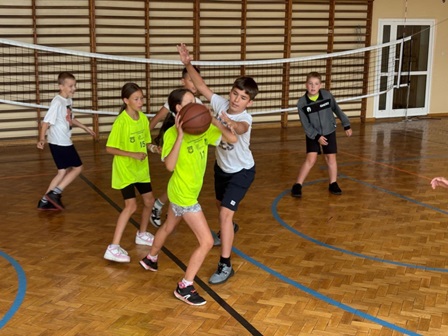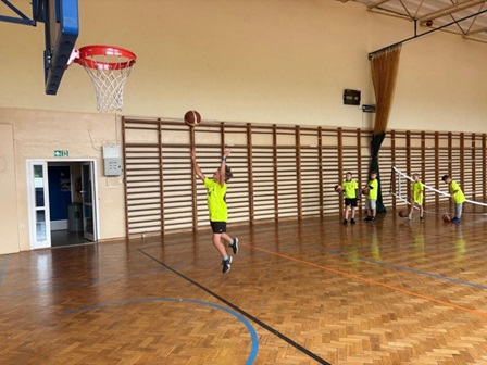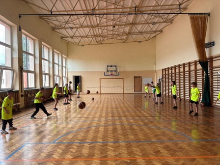 Celem zajęć było zachęcenie uczniów do aktywnego spędzania czasu wolnego, rozwijanie sprawności fizycznej, nauka podstaw koszykówki oraz kształtowanie współpracy i postawy fair play w grupie. Przebieg zajęć: